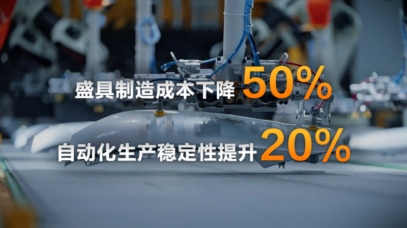 ??禉C器人3D視覺引導系統(tǒng),有效解決了沖壓車間與焊裝車間在實現柔性化、智能化生產過程中,對于精定位盛具的依賴,盛具生產工藝大幅度簡化,制造成本縮減50%以上,節(jié)約盛具制造成本近千萬。