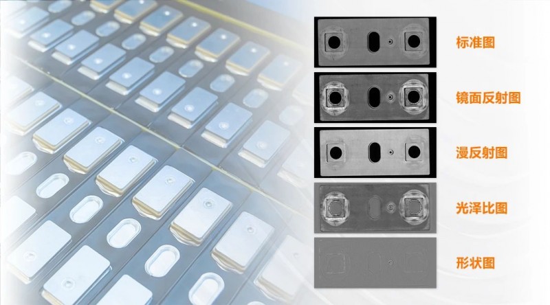 檢測(cè)效果:去除表面反光和臟污影響,將有深度變化的缺陷突出;根據(jù)臟污與樣品表面的反射特性不同突出臟污缺陷,同時(shí)與凹凸等缺陷進(jìn)行區(qū)分