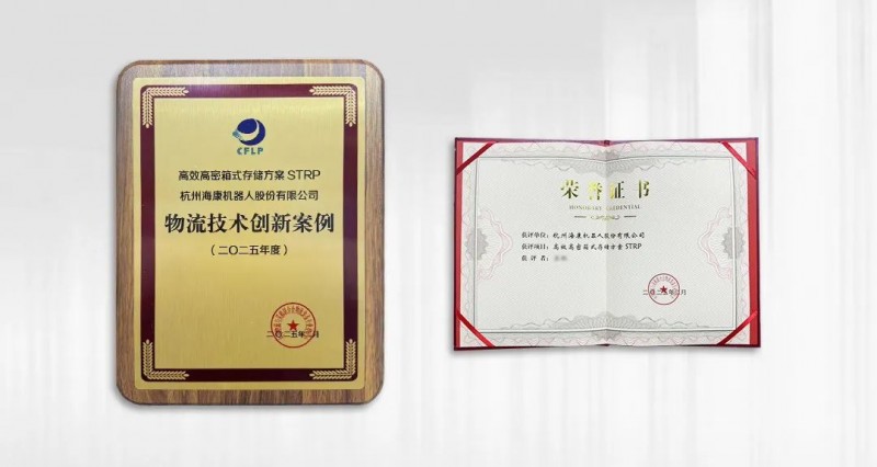 大會同期揭曉“2025年物流技術(shù)創(chuàng)新案例”,海康機器人高效高密箱式存儲方案STRP入選。