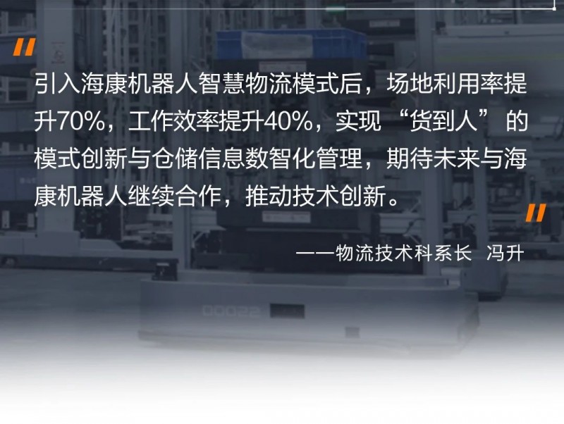 通過(guò)料箱機(jī)器人立體貨架存儲(chǔ)方式,充分利用上層空間,整體節(jié)省面積5500㎡,料箱規(guī)整擺放,存儲(chǔ)區(qū)內(nèi)自動(dòng)化,物流作業(yè)更加井然有序。
