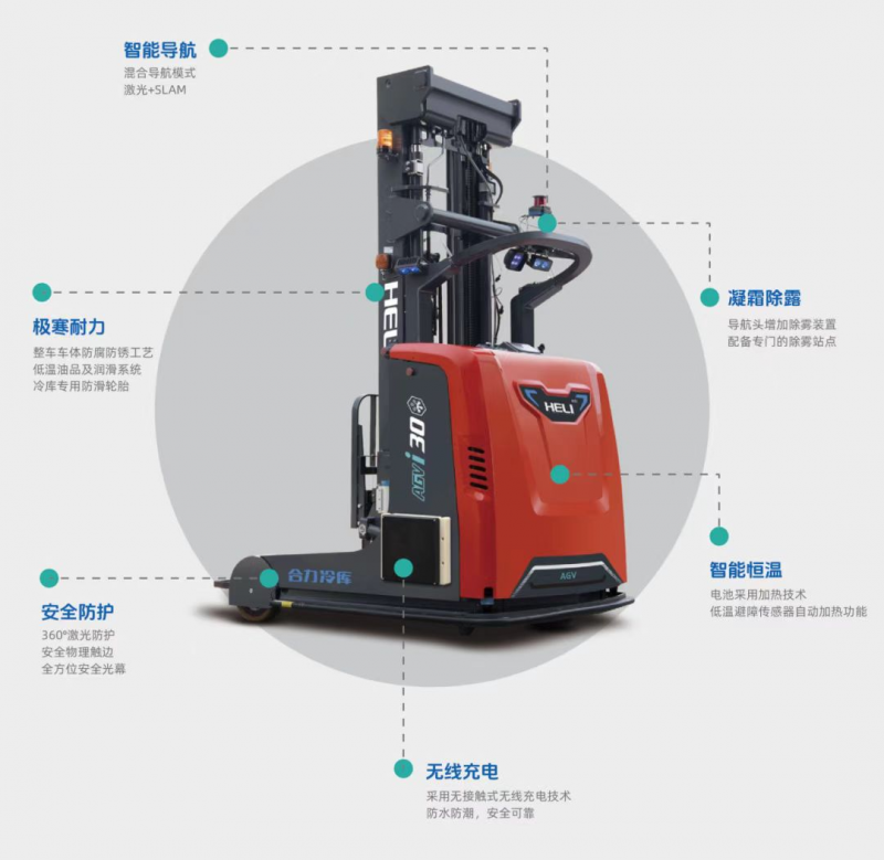 合力憑借深厚的技術(shù)沉淀和豐富的制造經(jīng)驗(yàn),推出冷鏈專用版叉車AGV。基于“優(yōu)質(zhì)本體+先進(jìn)控制+溫濕系統(tǒng)+智能平臺(tái)”打造領(lǐng)先一代的冷庫(kù)叉車AGV—CQD系列,成功攻克了-30℃極低溫度環(huán)境下的“高位存儲(chǔ)+智能堆疊+接駁搬運(yùn)”等場(chǎng)景一體化作業(yè)難題。