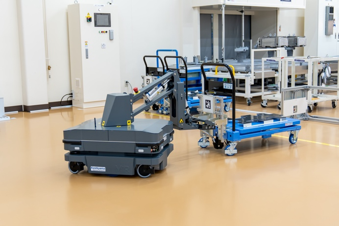 在日本樫山工業(yè)株式會(huì)社,工廠擴(kuò)建后運(yùn)輸距離大幅增加,傳統(tǒng)的自動(dòng)導(dǎo)向車 (AGV) 難以滿足高效的內(nèi)部物流需求。MiR250 Hook 憑借模塊化設(shè)計(jì)與智能調(diào)度系統(tǒng),成為破解物流難題的關(guān)鍵。其搭載的激光 SLAM 導(dǎo)航技術(shù),能實(shí)時(shí)構(gòu)建工廠地圖并動(dòng)態(tài)規(guī)劃最優(yōu)路徑,即使在狹窄通道與交叉路口也能實(shí)現(xiàn)毫米級(jí)精準(zhǔn)避障。通過與工廠 MES 系統(tǒng)深度集成,MiR250 Hook 根據(jù)生產(chǎn)節(jié)拍自動(dòng)響應(yīng)物料需求,減少傳統(tǒng)人工搬運(yùn)中因視線盲區(qū)、操作失誤導(dǎo)致的工傷隱患,成為柔性物流體系中兼具效率與安全的 “萬能適配器”。?