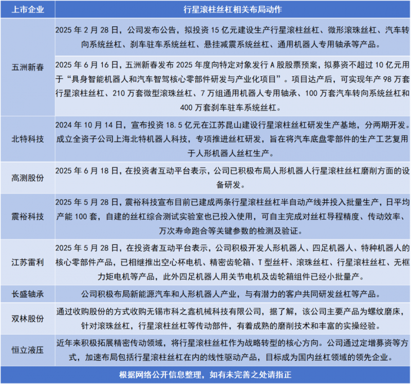 近日,五洲新春、雙林股份、震??萍?、北特科技、長盛軸承等多家零部件上市公司都在加速布局轉(zhuǎn)型行星滾柱絲杠領(lǐng)域,相關(guān)企業(yè)合計(jì)規(guī)劃投資金額已超過60億元。