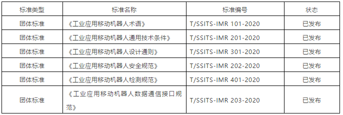 圖表:移動機器人產(chǎn)業(yè)聯(lián)盟制定的6項團體標(biāo)準(zhǔn)