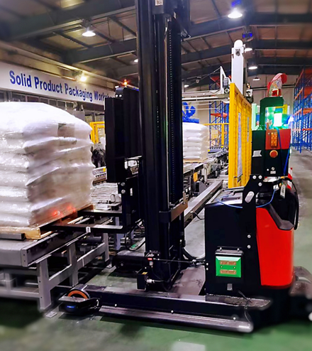 該項(xiàng)目客戶為韓國資本在中國的化工外企,杭叉智能通過整合機(jī)械臂、輸送線、穿梭車、打包機(jī)以及WMS等軟硬件,結(jié)合自身新款堆垛前移車進(jìn)行項(xiàng)目規(guī)劃,充分發(fā)揮車輛小巧靈活,對于空間需求進(jìn)一步縮小的優(yōu)勢,配以鋰電快充大容量的特點(diǎn)以及5G通訊技術(shù)的巨大優(yōu)勢,因地制宜,在較短的時(shí)間內(nèi)完成實(shí)施并將項(xiàng)目投入使用,完全替代了原先人工車的作業(yè)模式,達(dá)到了機(jī)器換人的目的,實(shí)現(xiàn)整體物流智能化。