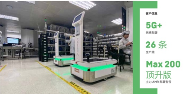 全球領(lǐng)先的某大型通信設(shè)備公司無線小基站智能工廠項(xiàng)目,迦智科技近百臺自然導(dǎo)航AMR,在5G技術(shù)低延時(shí)、高帶寬、高速率的傳輸特性加持下,實(shí)現(xiàn)了與用戶現(xiàn)場的MES、WMS以及第三方設(shè)備間的互聯(lián)互通,信息上傳下達(dá),交互協(xié)同作業(yè)。