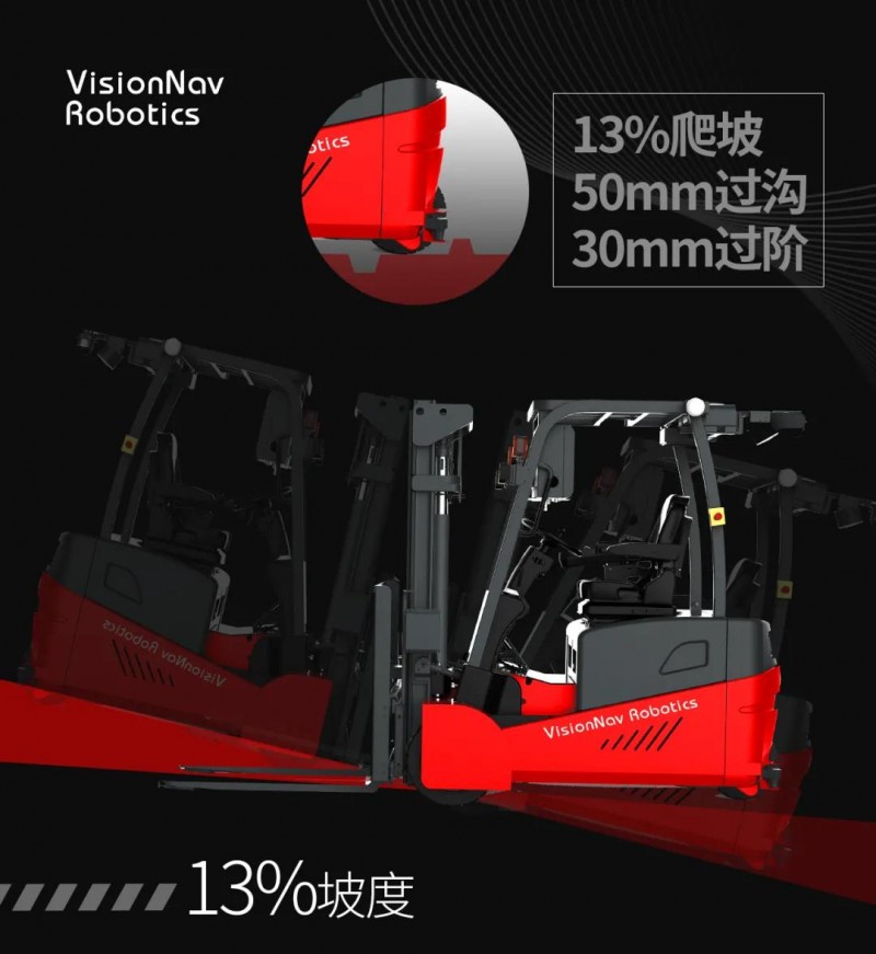 VNP20裝載了450mm的高耐磨實(shí)心橡膠輪,實(shí)現(xiàn)13%最大坡度、50mm最大過溝寬度以及30mm最大過階高度的越障能力,輕松應(yīng)對(duì)外月臺(tái)、室外等高速、高負(fù)載作業(yè)工況。