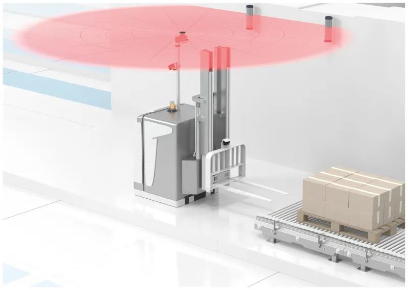 在日常的物流倉儲應用中,越來越多的自動導引車輛 (AGV) 正投入使用,而 AGV 運行需要兩個必不可少的功能:可靠的導航和安全防護。導航可以采用不同的方法,例如車道引導或使用 LiDAR 傳感器進行導航。我們可以在工廠墻壁上安裝反射器,或者通過示教環(huán)境輪廓進行導航。