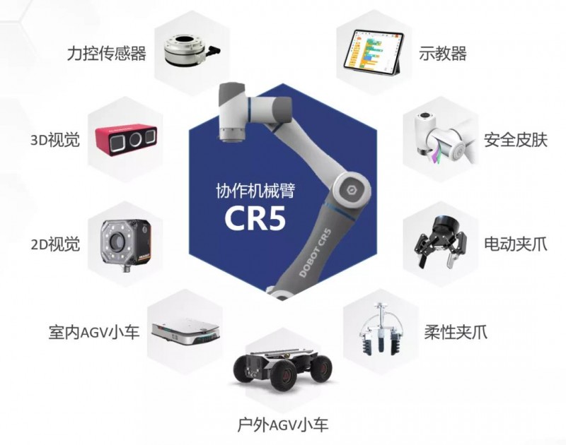 作為計(jì)劃的一部分,越疆推出了展翅、凌云1.0、凌云2.0三大套件組合,套件包括CR5協(xié)作機(jī)器人、示教器、安全皮膚、2D和3D視覺(jué),柔性?shī)A爪、電動(dòng)夾爪、力傳感器、戶外/室內(nèi)GV小車等基礎(chǔ)單元,適配工業(yè)、商業(yè)、醫(yī)療、農(nóng)業(yè)等多種場(chǎng)景應(yīng)用創(chuàng)新方案的搭建。