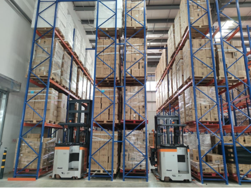 優(yōu)異的性能使得VDA116三向叉車自推出以來就受到了眾多用戶的青睞。某食品配送公司,每天有大量的物料需要進(jìn)出倉庫,之前都是采用地堆的方式存儲(chǔ)。隨著公司業(yè)務(wù)的不斷擴(kuò)大,原本的存儲(chǔ)方式已經(jīng)不能滿足他們現(xiàn)有的業(yè)務(wù)需求。只有將物料上貨架,在不改變現(xiàn)有倉儲(chǔ)面積的情況下,可以增加庫位??墒侨绻捎脗鹘y(tǒng)貨架堆垛方式,在庫位的增加上并沒有很大的優(yōu)勢,未來業(yè)務(wù)再擴(kuò)張后,還將面臨儲(chǔ)位不足的問題。客戶多方比較后決定采用卓一的三向堆垛車來改造現(xiàn)在的倉庫。