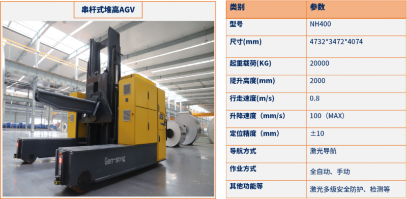 井松智能研制的超重載(20噸級+)串桿式堆高叉車AGV產(chǎn)品,聚集自身多年的技術(shù)力量與產(chǎn)品案例經(jīng)驗(yàn),基于“智能感知+智能建模+智能算力”三角閉環(huán)技術(shù),以及硬核Gen-song智能調(diào)度系統(tǒng)平臺,立足智慧物流場景化應(yīng)用痛點(diǎn),打破國外多年“卡脖子”技術(shù)的行業(yè)產(chǎn)品壁壘,實(shí)現(xiàn)超重載(20噸級+)、大尺寸、多形狀冶金行業(yè)客制化搬運(yùn)配送功能產(chǎn)品服務(wù),此款產(chǎn)品的應(yīng)用場景可以實(shí)現(xiàn)在鑄造、鋼鐵、重型機(jī)械、汽車等多個行業(yè)復(fù)制應(yīng)用。