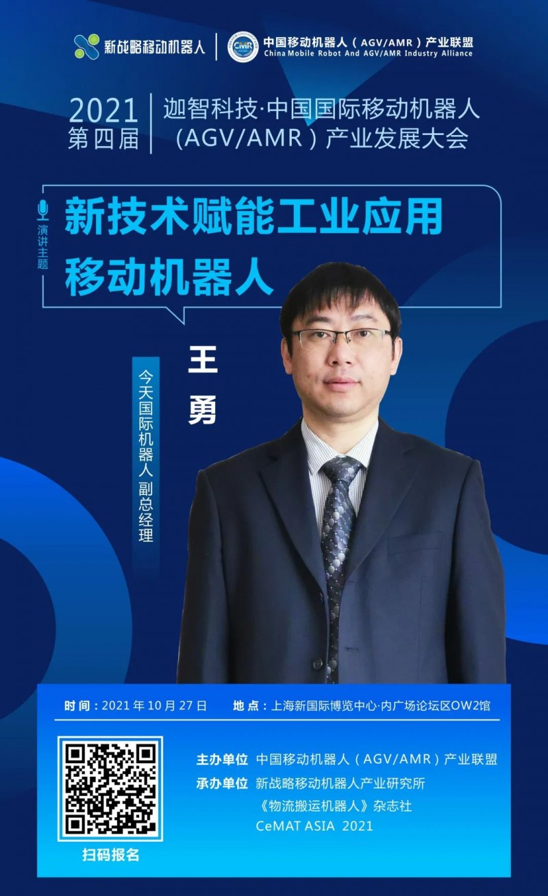 5G外,今天國際機器人還在探索哪些新技術?10月27日,在中國移動機器人(AGV/AMR)產(chǎn)業(yè)聯(lián)盟主辦的《第四屆國際移動機器人大會》上,今天國際機器人副總經(jīng)理王勇將帶來“新技術賦能工業(yè)應用移動機器人”主題演講,敬請期待!