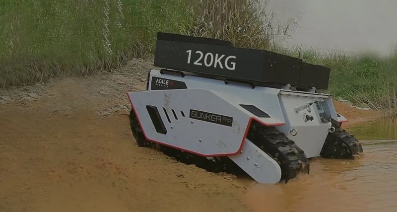 可以說,BUNKER Pro提供了在野外、箱涵、石泥路等高挑戰(zhàn)性環(huán)境下最佳的移動開發(fā)平臺,助力機(jī)器人行業(yè)和科研客戶快速部署和開發(fā)特殊作業(yè)機(jī)器人,諸如巡檢、勘探、消防、特種拍攝、特種運(yùn)輸?shù)葢?yīng)用。BUNKER Pro外觀結(jié)構(gòu)全新設(shè)計(jì),車身重心位置低,裝置了1500W雙伺服電機(jī)進(jìn)行驅(qū)動,極具越野性。此外,其采用了克里斯蒂懸掛和瑪?shù)贍栠_(dá)四輪平衡多懸掛系統(tǒng)組合,并于全車安裝了加強(qiáng)版避震器和防撞擊結(jié)構(gòu)組件,外觀采用了高強(qiáng)度和大厚度的鋼材,這為執(zhí)行特種作業(yè)應(yīng)用提供了可靠的減震系統(tǒng)性能。 目前,BUNKER Pro最高越障可達(dá)18cm,爬坡度為<=30°,這意味著面對野外坡道和廠區(qū)樓梯,BUNKER Pro都可以一舉輕松爬越和穩(wěn)定運(yùn)行。BUNKER Pro驅(qū)動形式為履帶差速轉(zhuǎn)向和左右獨(dú)立驅(qū)動,自研運(yùn)動控制系統(tǒng)電機(jī)采用了2500線光電增量式碼盤,可以在復(fù)雜道路中實(shí)現(xiàn)高精度的控制,并且可以柔性實(shí)現(xiàn)0轉(zhuǎn)彎半徑原地自旋。BUNKER Pro外觀配置了防撞耐用的鋼質(zhì)結(jié)構(gòu), 且整車結(jié)構(gòu)、材料以及外置電氣元件均采用均采用高防護(hù)等級設(shè)計(jì),達(dá)到了IP67安全標(biāo)準(zhǔn),這是市面上同級別綜合路況移動平臺中防護(hù)等級最高的。其具備沙塵滲透防護(hù)、移動涉水和短暫浸泡防護(hù)(防浸)等優(yōu)勢,無懼任何潮濕、涉水、越野等極限工作環(huán)境,可以保證BUNER Pro極大拓展機(jī)器人的使用場景。基于高等級防護(hù)、模塊化和精簡部件結(jié)構(gòu)設(shè)計(jì),BUNKER Pro車體后期清潔也是十分便捷的,不藏污垢,不易腐蝕,易于維護(hù)。標(biāo)準(zhǔn)二次開發(fā)拓展應(yīng)用BUNKER Pro平臺空間大,可以在原地自旋過程中達(dá)到120kg載重,這意味著可以輕松搭載各類檢測設(shè)備。用戶可通過CAN總線協(xié)議與主控通訊,快速接入傳感系統(tǒng),搭建自主應(yīng)用開發(fā)平臺,同時(shí),BUNKER Pro也支持定制高級操作模式(遠(yuǎn)程駕駛/自動駕駛),提供開源SDK、ROS_PACKAGE。BUNKER Pro還具有大電池容量,可在常規(guī)路面載重120kg運(yùn)行情況下支持3小時(shí)續(xù)航, 也可對搭載的傳感器等外部設(shè)備進(jìn)行供電, 為機(jī)器人應(yīng)用的作業(yè)提供充足和便捷的運(yùn)行保障。