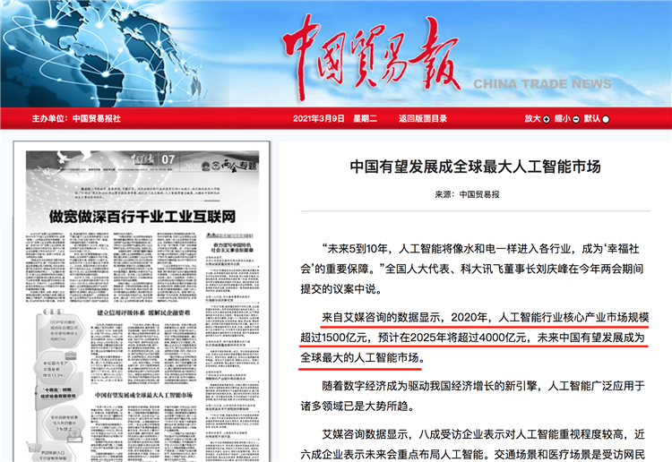 以人工智能為例,中國作為制造業(yè)大國,為其提供了豐富的應(yīng)用場景。據(jù)艾媒咨詢數(shù)據(jù):2020年人工智能行業(yè)核心產(chǎn)業(yè)市場規(guī)模將超過1500億元,預(yù)計(jì)在2025年將超過4000億元,中國人工智能產(chǎn)業(yè)在各方的共同推動(dòng)下進(jìn)入爆發(fā)式增長階段,市場發(fā)展?jié)摿薮?,未來中國有望發(fā)展為全球最大的人工智能市場。