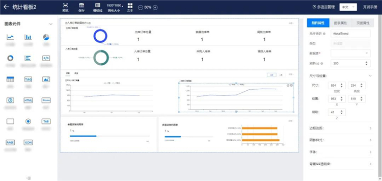 DataView提供豐富多樣的元件庫,支持用戶自定義配置頁面布局,關(guān)聯(lián)數(shù)據(jù)源后可動態(tài)展示可視化頁面。