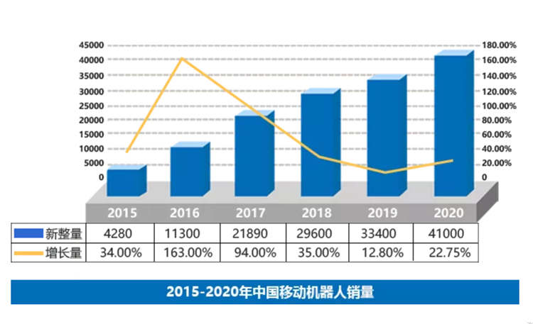 根據(jù)新戰(zhàn)略機(jī)器人產(chǎn)業(yè)研究所統(tǒng)計,中國移動機(jī)器人近三年的累積銷量已經(jīng)超過10萬臺,中國工業(yè)應(yīng)用移動機(jī)器人2015~2020年銷量如下圖