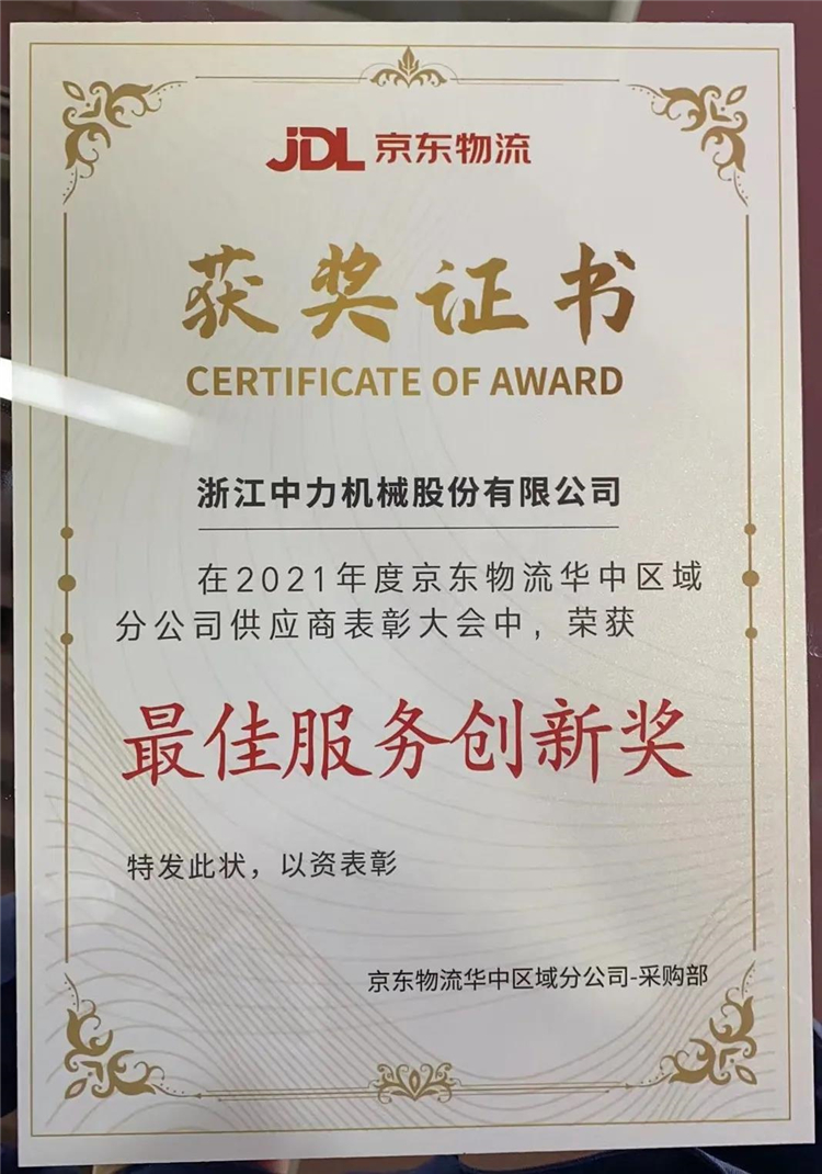 中力榮獲2021年度“最佳服務(wù)創(chuàng)新獎”榮譽(yù)稱號,肯定了中力在為客戶提升產(chǎn)業(yè)效率方面作出的杰出貢獻(xiàn)。