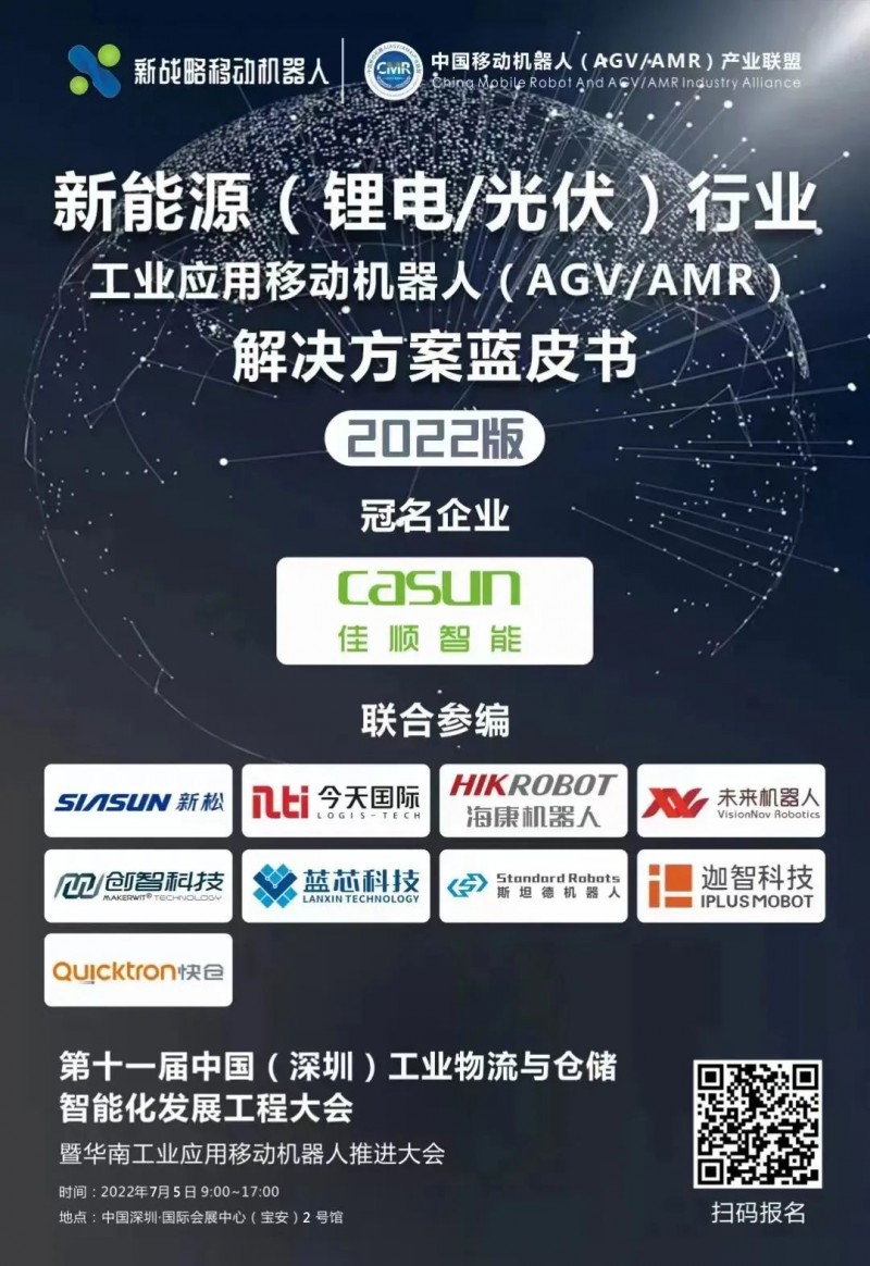 當前,新能源領(lǐng)域,氫能產(chǎn)業(yè)發(fā)展還處于早期,但鋰電及光伏產(chǎn)業(yè)已經(jīng)相對成熟,生產(chǎn)環(huán)節(jié)的自動化程度也在不斷提高,移動機器人作為自動化搬運設(shè)備,也陸續(xù)在鋰電及光伏行業(yè)落地應用。2022年7月5日,中國移動機器人(AGV/AMR)產(chǎn)業(yè)聯(lián)盟將發(fā)布 《新能源行業(yè)用移動機器人(AGV/AMR)解決方案藍皮書(2022版)》,敬請期待!